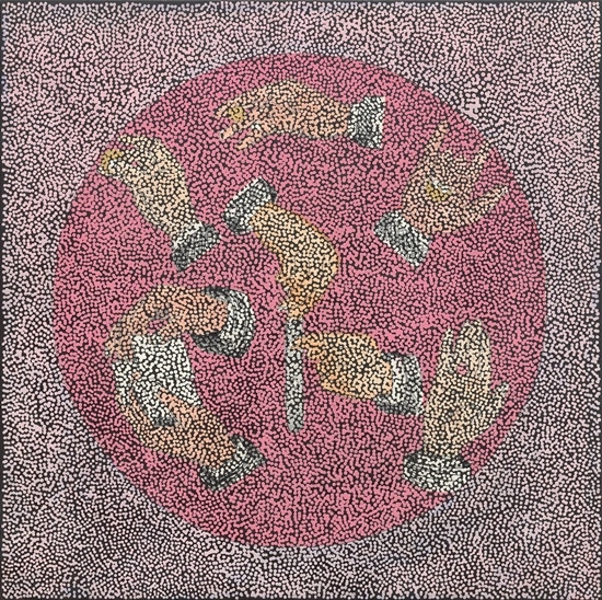 올 12월 국제갤러리 서울점에서 개인전을 앞둔 다니엘 보이드(Daniel Boyd)의 신작 〈Untitled (MHMLW)〉(2025)도 함께 전시된다. 작가 특유의 점묘법으로 형성된 렌즈 속 ‘교묘한 손놀림(sleight of hand)’은 서구 중심 역사관의 이면을 은유적으로 드러낸다.