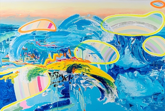 이세준 Lee Sejun, Beyondscape 03, 2023, acrylic, oil and fluorescent pigment on linen, 130.3 × 192.7 cm