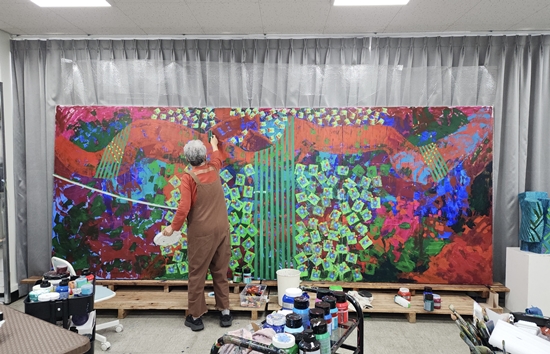 KIM YUN SHIN ; The artist at work in her studio, 2023
