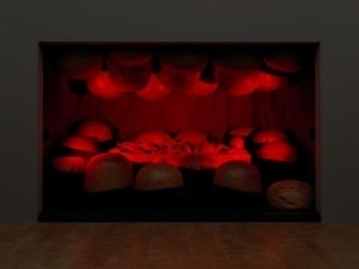 아버지의 파괴(The Destruction of the Father), 1974-2017 보존용 폴리우레탄 수지, 목 재, 천, 붉은 조명 237.8x362.3x248.6 cm 글렌스톤 미술관 소장, 포토 맥, 메릴랜드, 미국 사진: 크리스토퍼 버크 © The Easton Foundation / Licensed by SACK,Korea 출처: 호암미술관