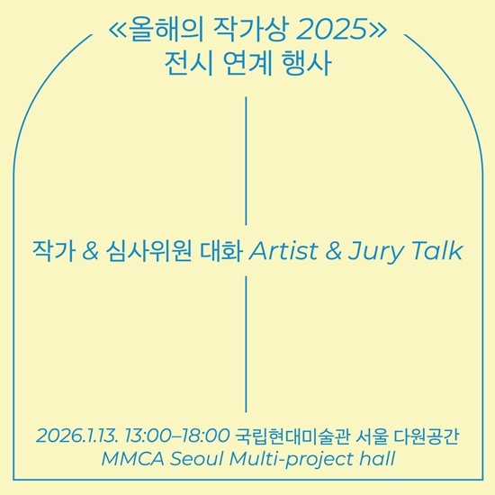 국립현대미술관은 《올해의 작가상 2025》의 최종 수상 작가 선정을 위한 ‘작가-심사위원 대화’를 2026년 1월 13일 국립현대미술관 서울 MMCA다원공간에서 개최한다.