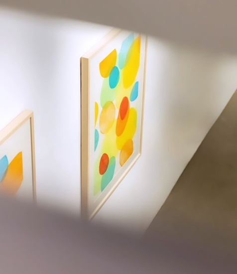 홍승혜 작가의 연 시리즈 중 반석, 설치 및 수성목판화 작품 (사진= 아트스페이스엑스)