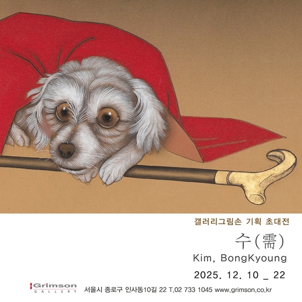 갤러리그림손은 12월 10일(수)부터 22일(월)까지 기획 초대전 을 개최한다. 2015년 갤러리그림손 신진작가 선정 이후 10년 만에 개인전을 여는 이번 전시에서 김봉경 작가는 그동안 그려온 다양한 동물들과 자화상을 선보일 예정이다.반려견을 비롯해 고래, 용, 고슴도치, 황소, 곰 등의 동물들은 작가의 내면에서 말하고 싶은 내용을 우의적으로 전달한다. 작