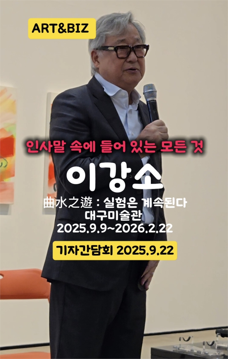 대구미술관은 지난 22일 이강소(b. 1943)의 대규모 회고전 "曲水之遊 : 실험은 계속된다" 오픈식을 개최했다. 이번 전시는 2026년 2월 22일까지다. 이번 이강소 회고전을 통해 우리는 무엇을 볼 수 있을까? 대구라는 지역이 주는 의미는 또 무엇일까? 올해 82세지만, 대학을 졸업한 1965년 이후부터 따지면 60년이 되는 2025년 회고전은 마치 다시 돌아온 환갑 같은 회고전(回顧展)이다.