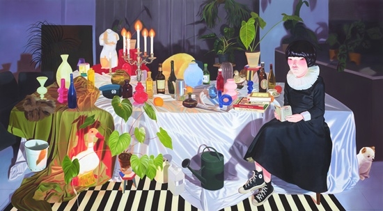 반면 배경이 있는 작품에서는 인물, 사물, 색채가 모두 동등한 서사적 주체로 작동하며 화면 전체가 복합적 이야기를 생성한다. 작가는 향후 작업에서 피아노, 말, 대형 식탁 등 스케일이 큰 사물로 확장하고, 설치적이고 입체적 요소를 실험할 계획을 갖고 있다. 색채와 조명의 변화, 그리고 화면 전체가 더욱 드라마틱해진 조형적 선택에서는 자유로움을 되찾고자 하는 열망이 감지된다.